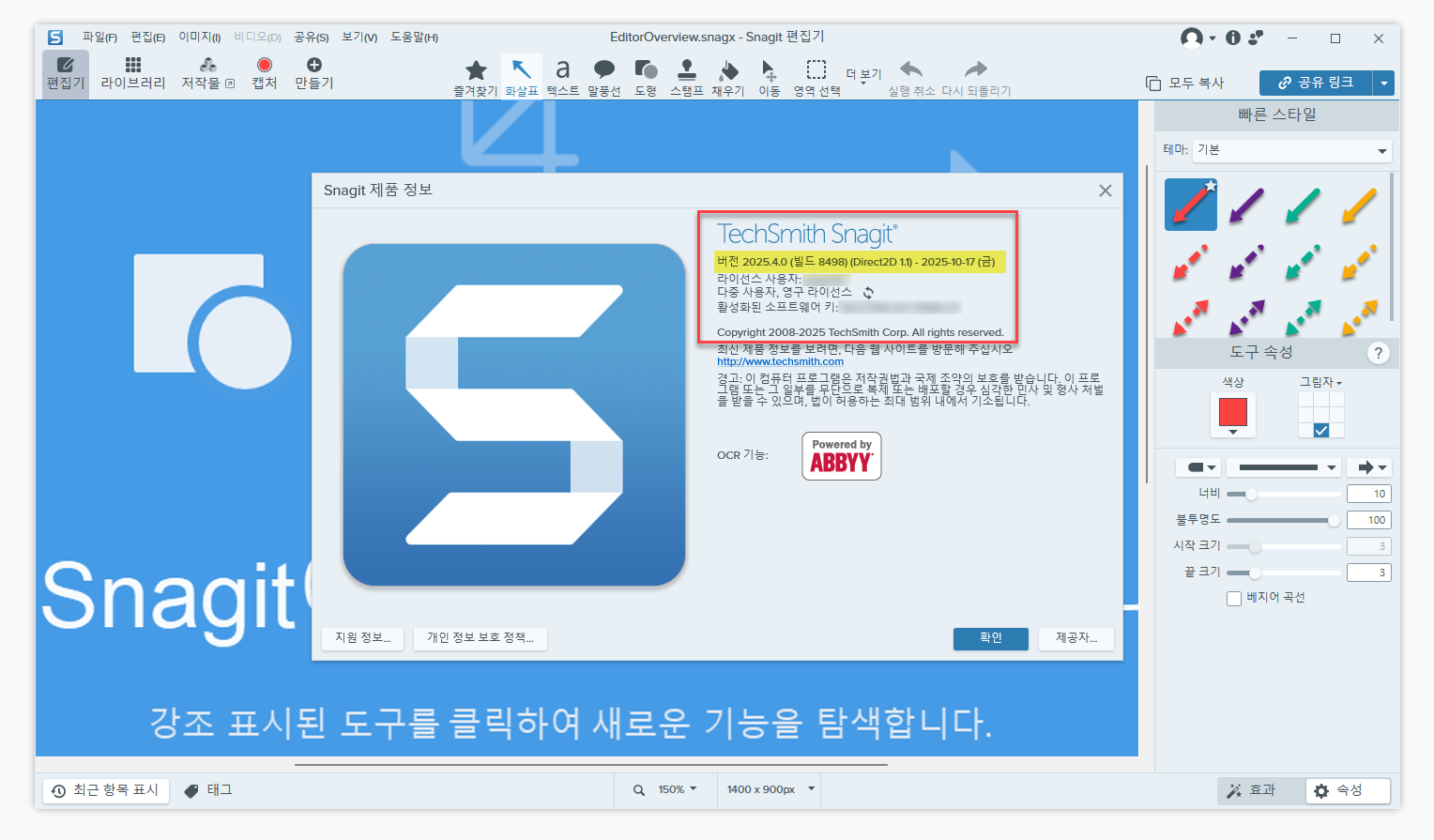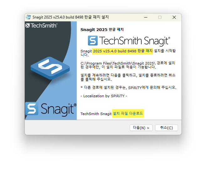 TechSmith Snagit 2025 v25.4.0 build 8498 한글 패치입니다.