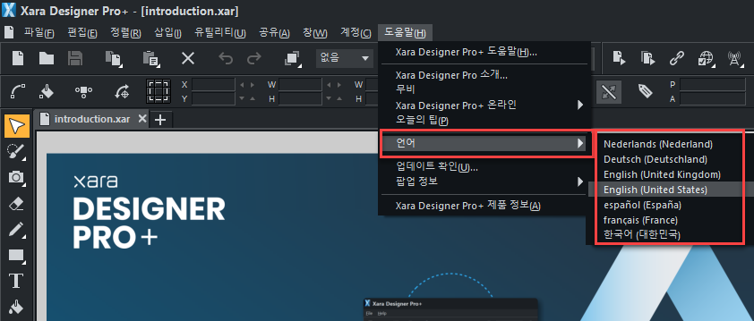 Xara 프로그램 설치 시, 다국어 (독일어, 스페인어, 프랑스어, 네덜란드어...) Windows 현지 언어 문제로 인해